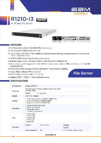Onboard RAID support for levels 0, 1, 5, and 10 File Server